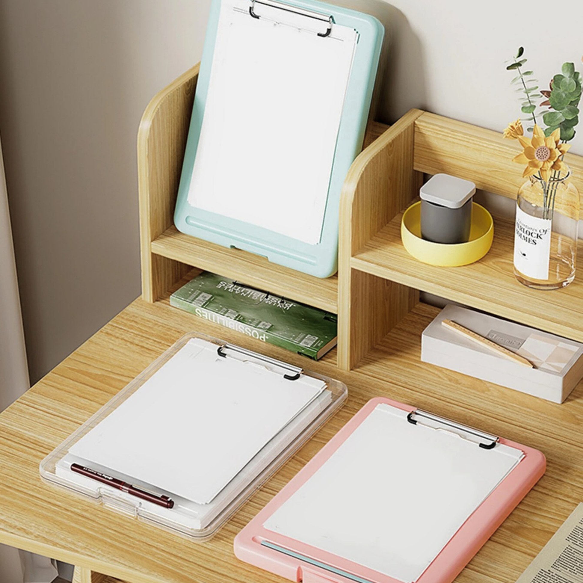 - Espace d'écriture intégré - maintien d'une feuille à l'avant pour écrire sans sortir les documents